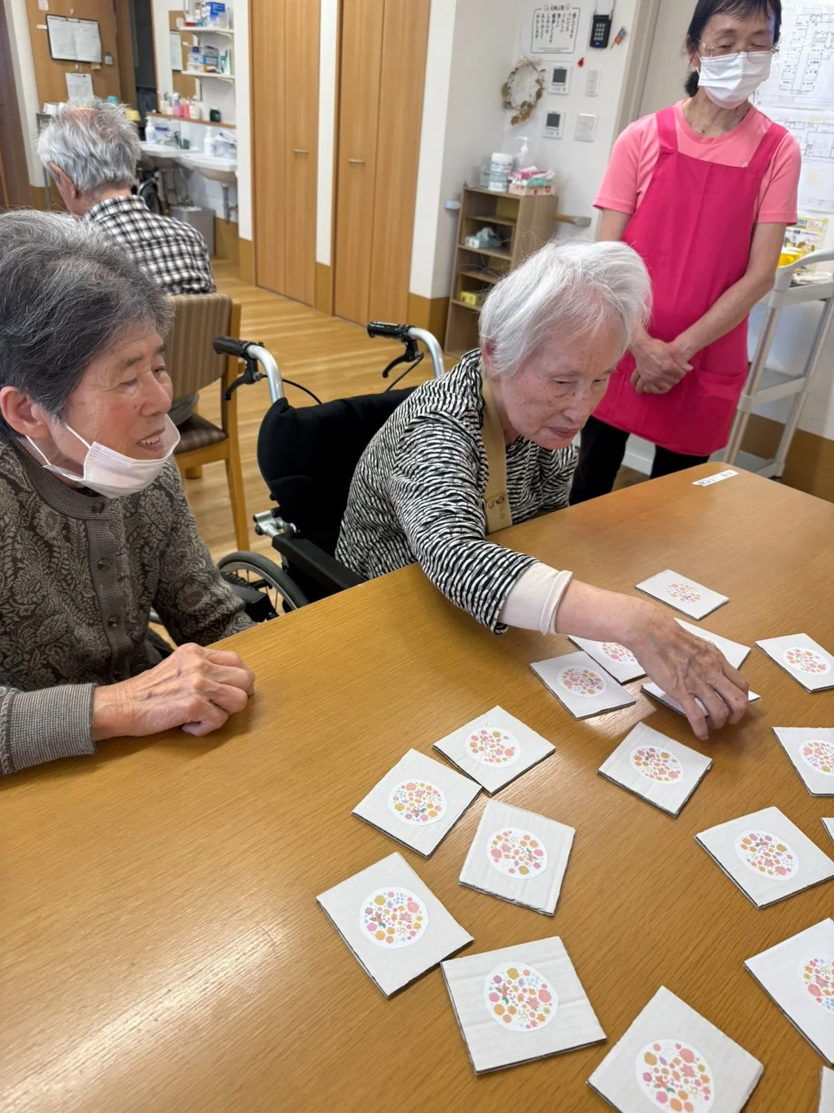 大枠のイベントが決定したら、今度はそのイベント内容が全ての利用者さんにとって楽しめる内容にできるかどうかという点を中心に内容のすり合わせを行っていきます。介護施設ですので、様々な身体的特徴や知能的な特徴をお持ちの方がいらっしゃるため、どんな方でも無理ない範囲で楽しめるようにイベント内容を検討していくのです。今回の神経衰弱では大きく2点、改善するべき点を発見しました。